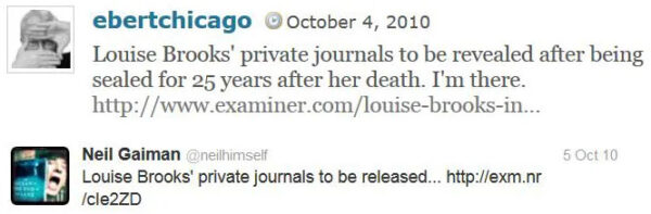 “Louise Brooks’ private journals to be revealed.” examiner.com, October 2, 2010.