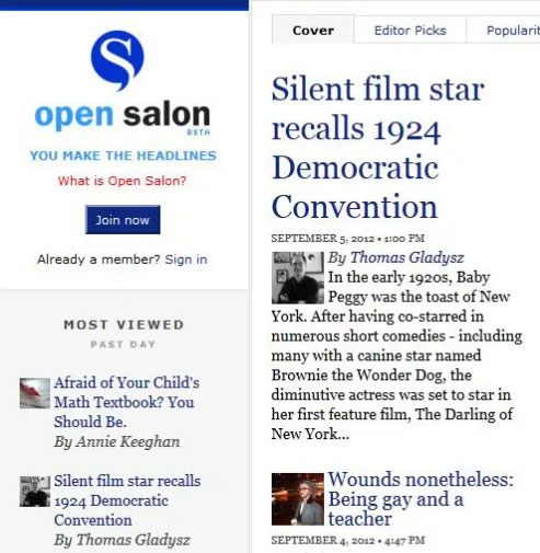 “The return of Baby Peggy, the last silent film star.” Open Salon, August 4, 2011.